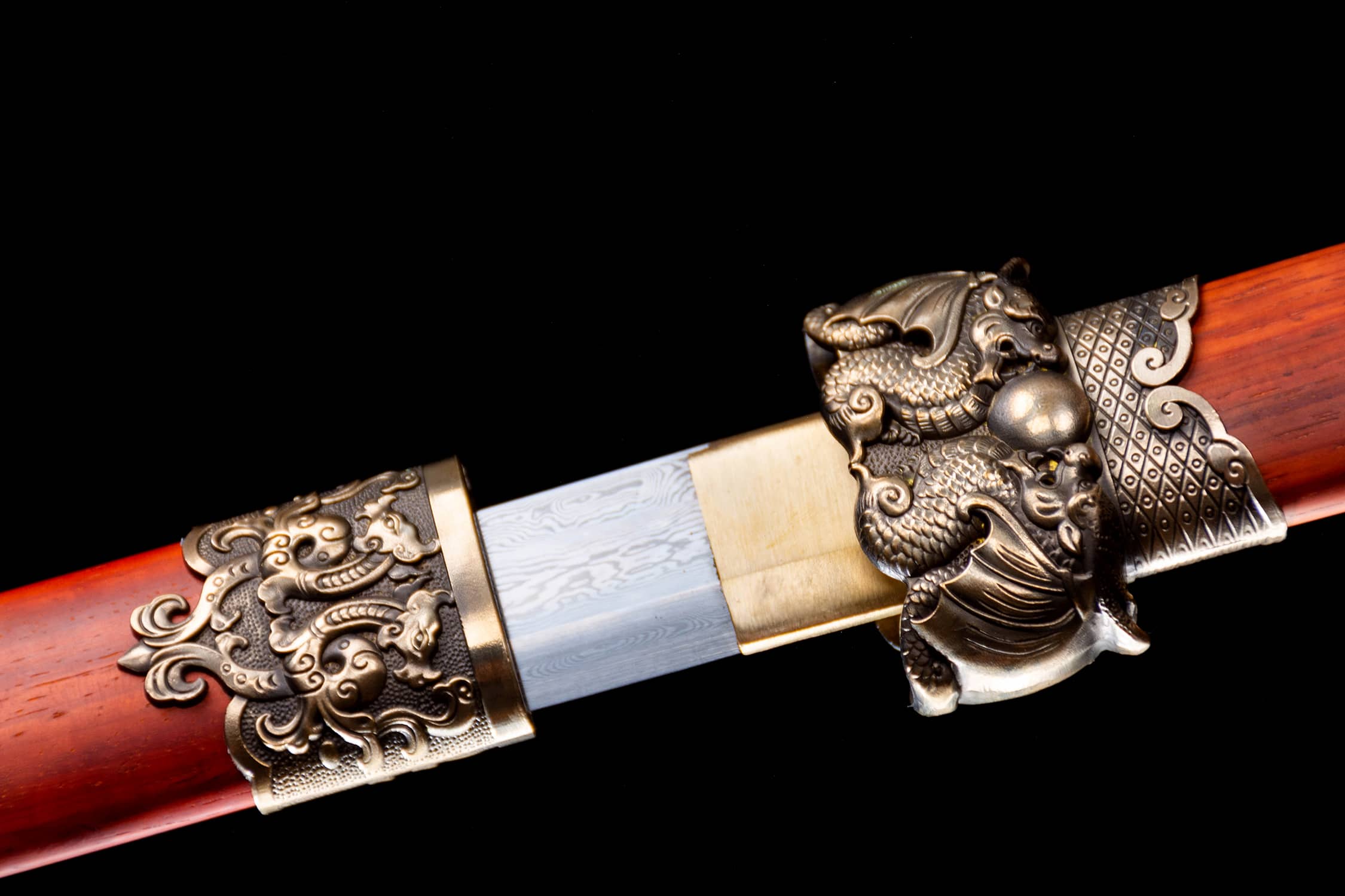 Blade material: patterned steel Sheath material: mahogany